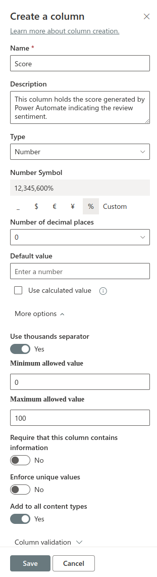 With our sentiment analysis complete, let’s store the results in SharePoint for future analysis and reporting. We’ll add a Create item action to our flow that saves each review with its calculated sentiment score.