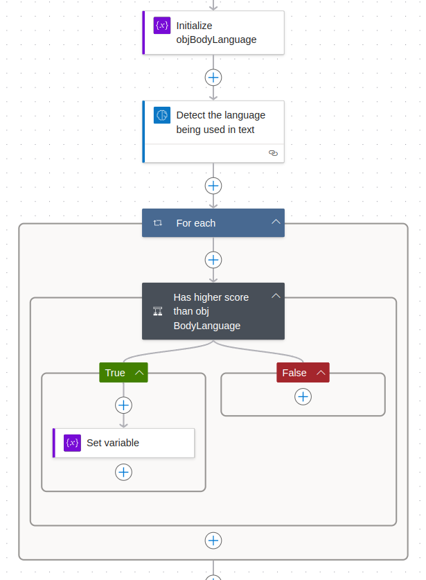 We are going to iterate through all the results and if a results confidence score is higher than the score of our current obj_BodyLanguage, overwrite obj_BodyLanguage with the result.